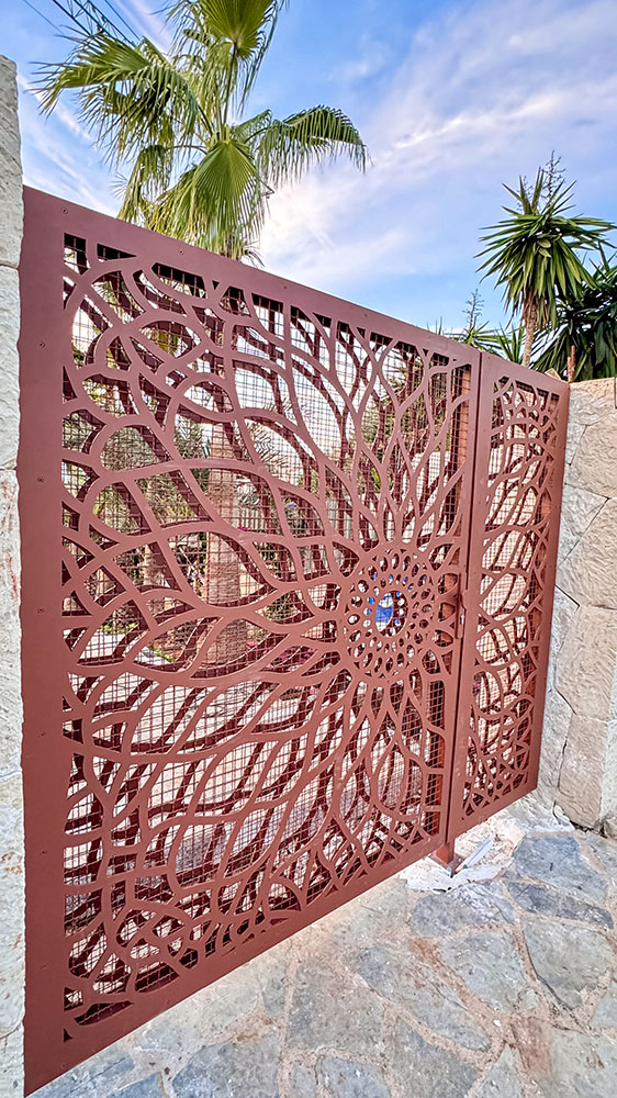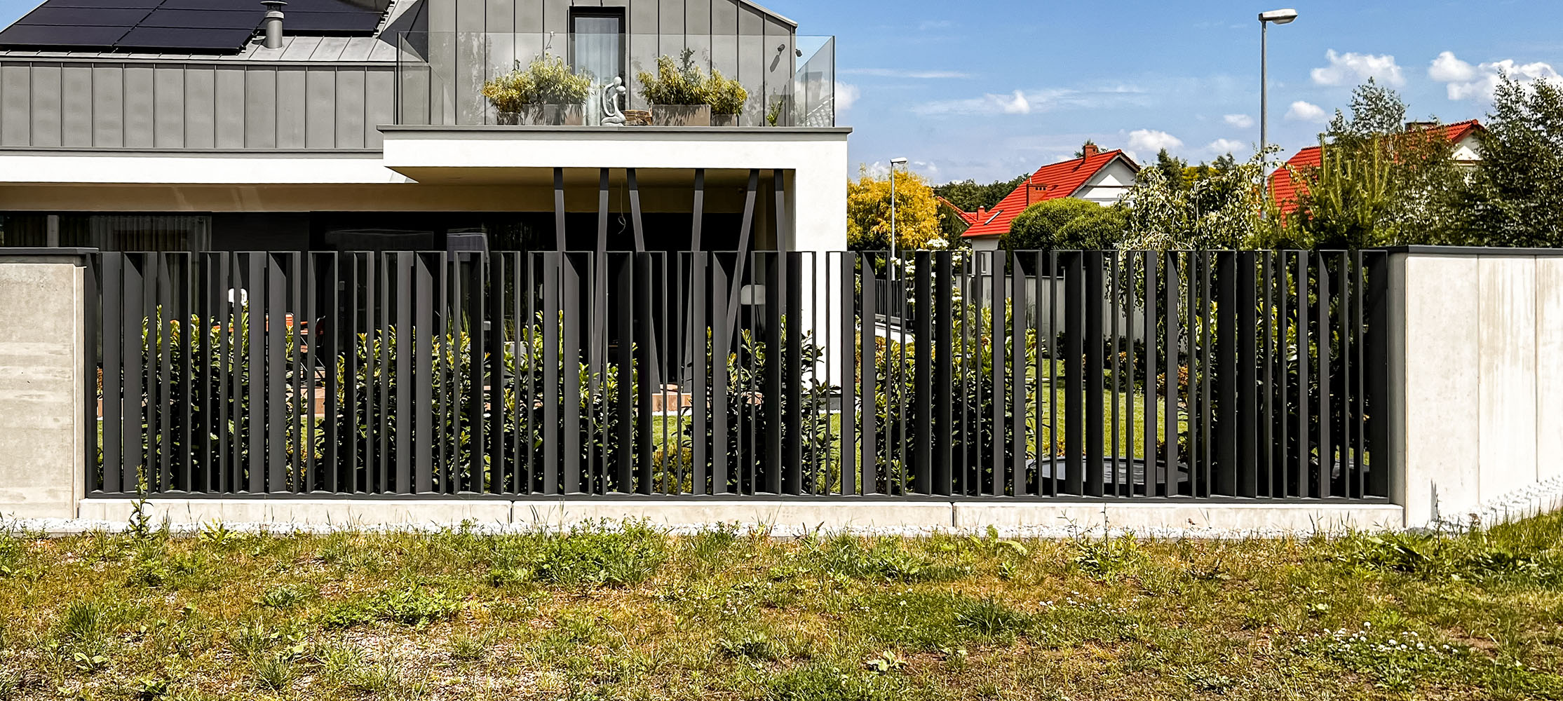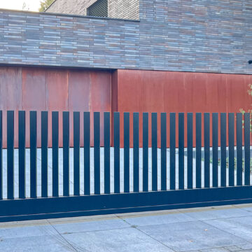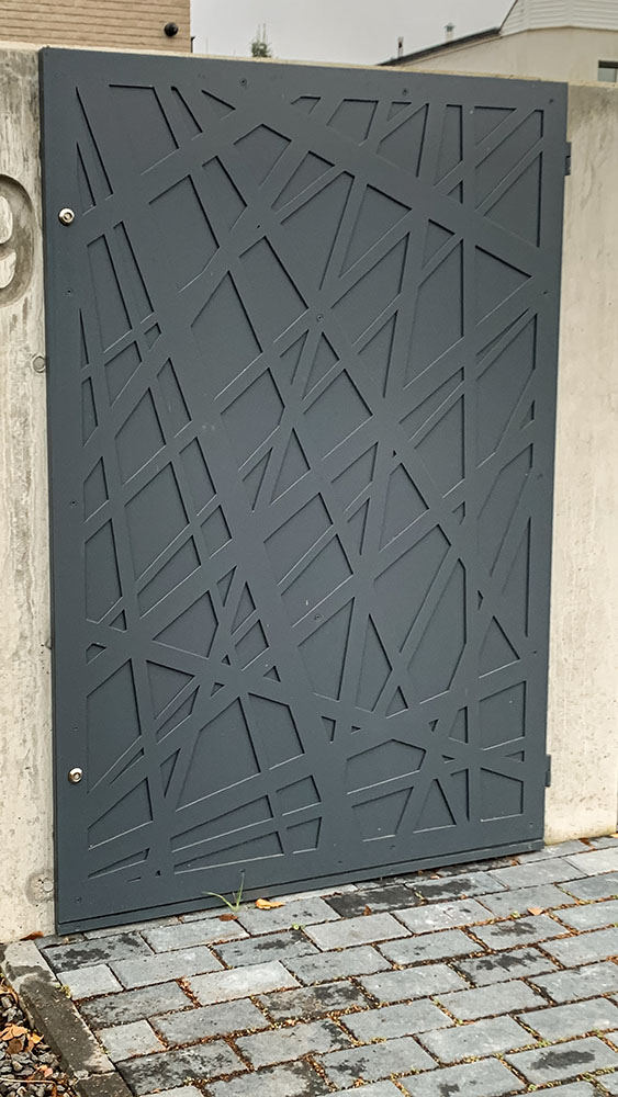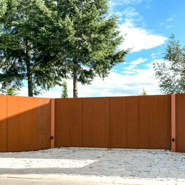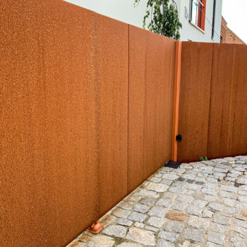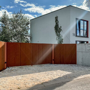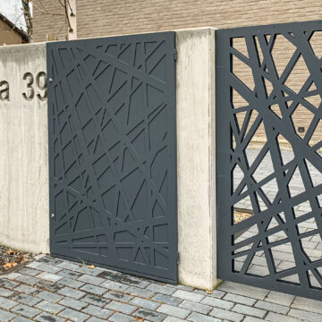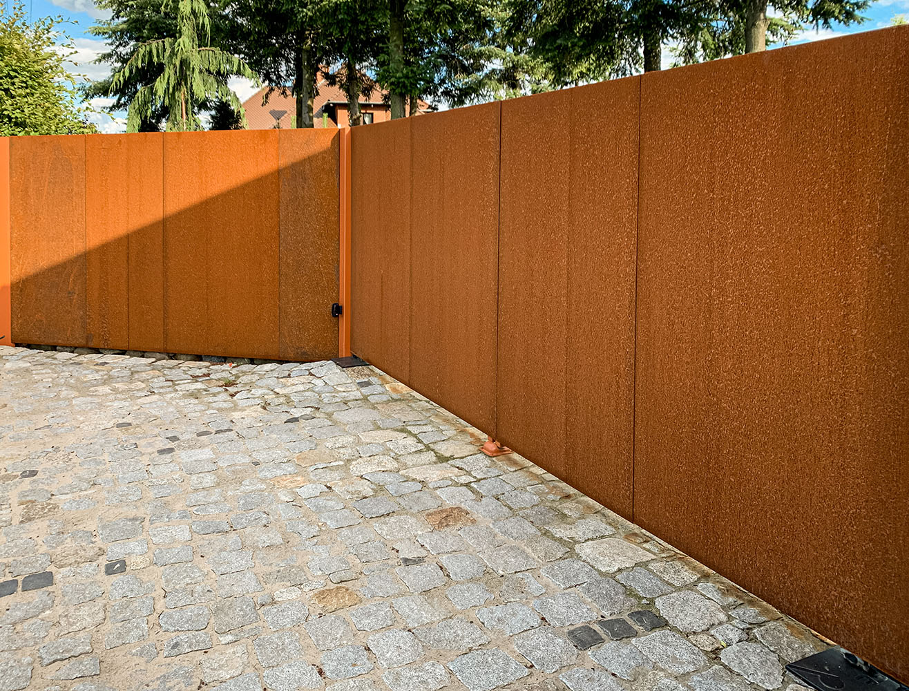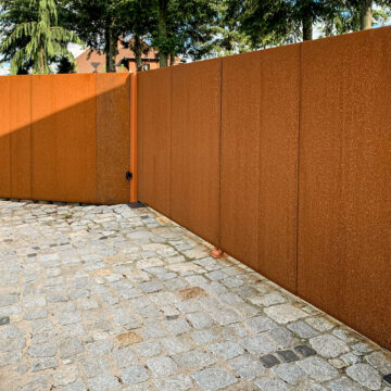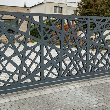 Ogrodzenie wykonane z blachy , wzór wycinany według indywidualnego projektu - realizacja w Poznaniu