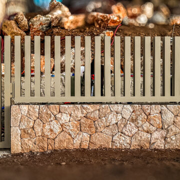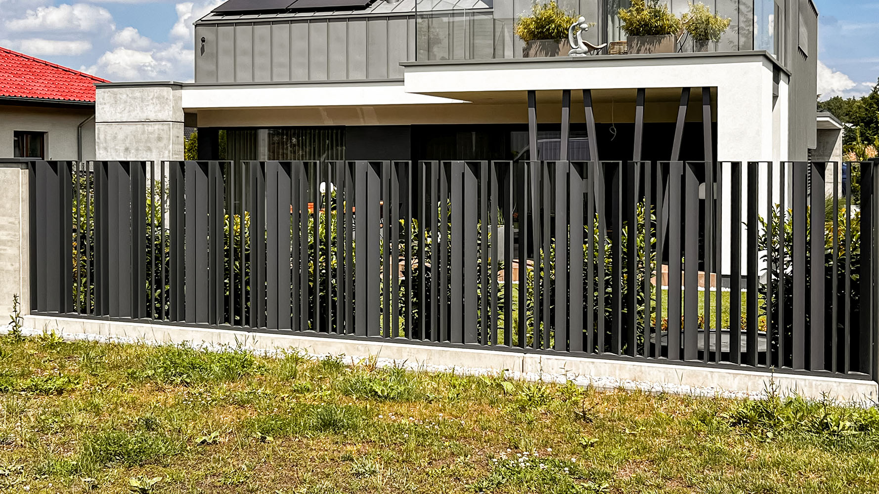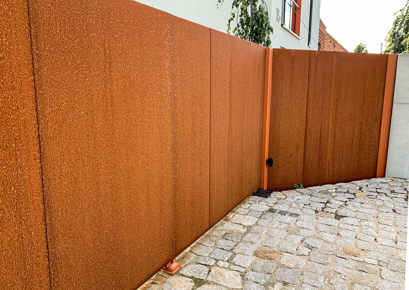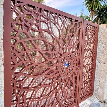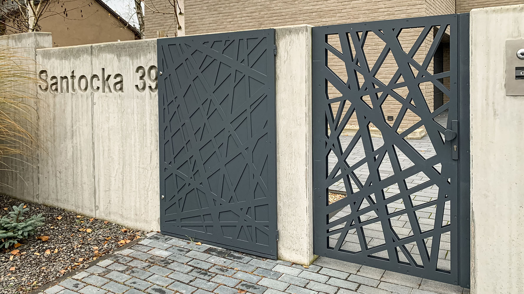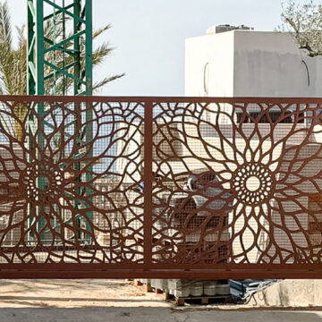 Ogrodzenie wykonane z blachy , wzór wycinany według indywidualnego projektu - realizacja w Poznaniu